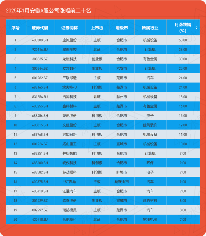 市值宝 | 2025年1月安徽A股上市公司发展报告