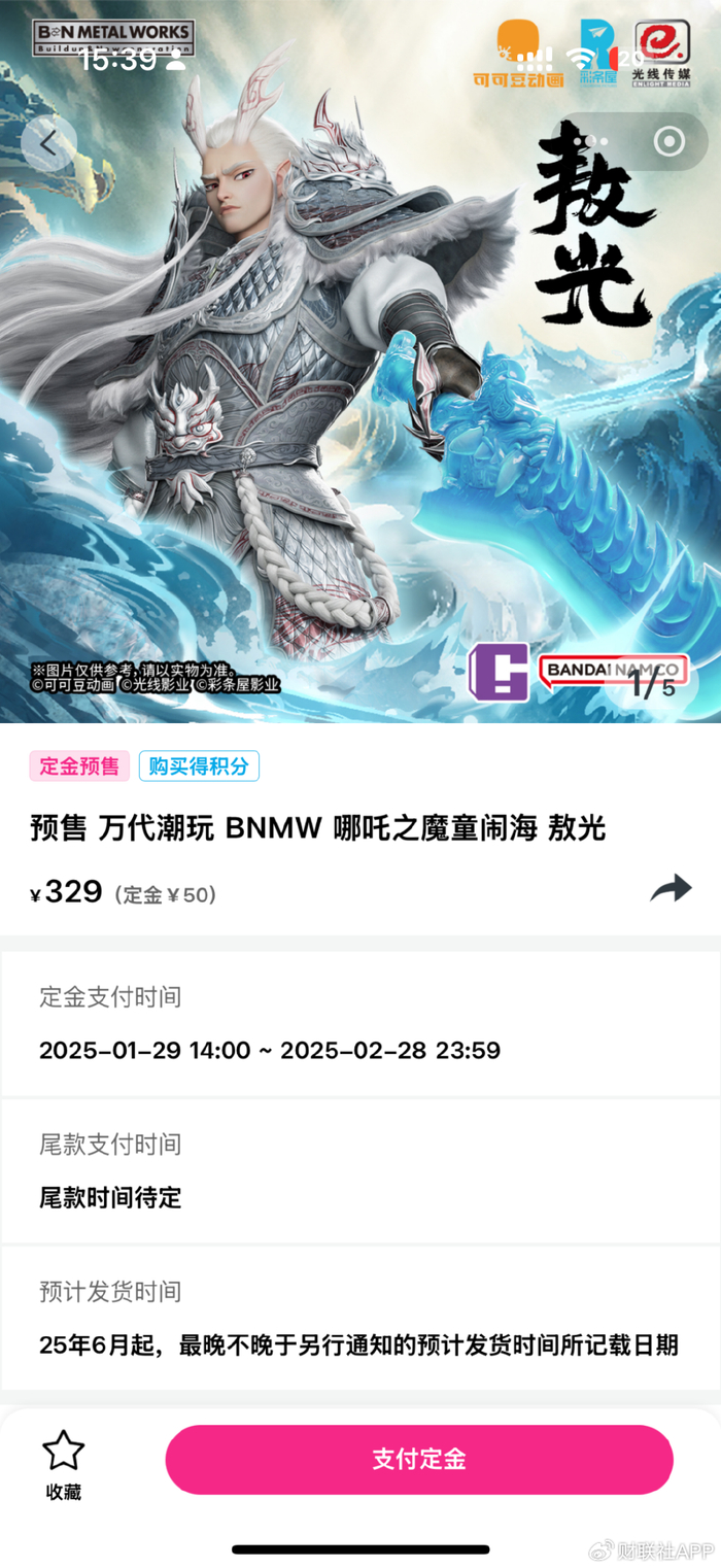 在《哪吒2》上映之前,其还与万代南梦宫推出7个不同系列的产品,《科创板日报》记者今日登录线上商城看到,周边产品显示售罄或无现货,预售的潮玩发货日期已排至2025年6月起。