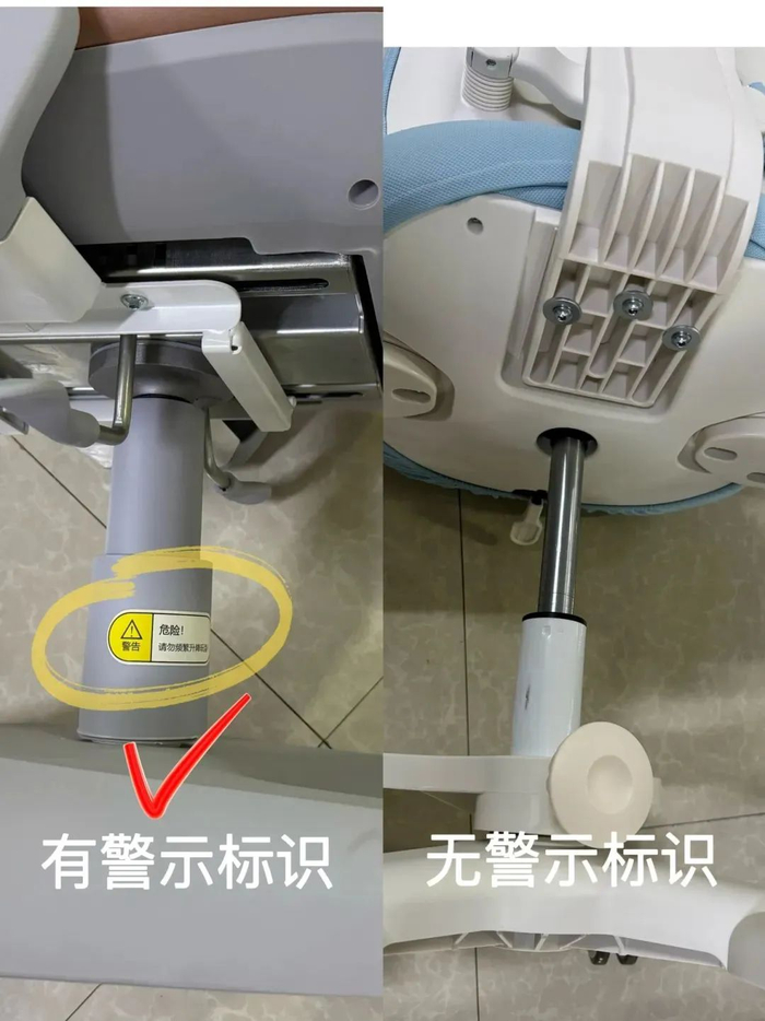 仔细检查产品结构安全。消费者应仔细检查产品是否有危险锐利边缘及尖端、是否有危险突出物、孔及间隙是否会导致儿童不小心塞入手指而无法拔出、管状部件外露管口端是否封闭、转椅气动杆升降是否顺畅等,以保障使用安全。