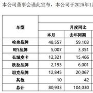 值得注意的是,长城汽车表示,上述产销量数字未经审核,亦未经本公司审计师确认,或会予以调整并有待最终确认。