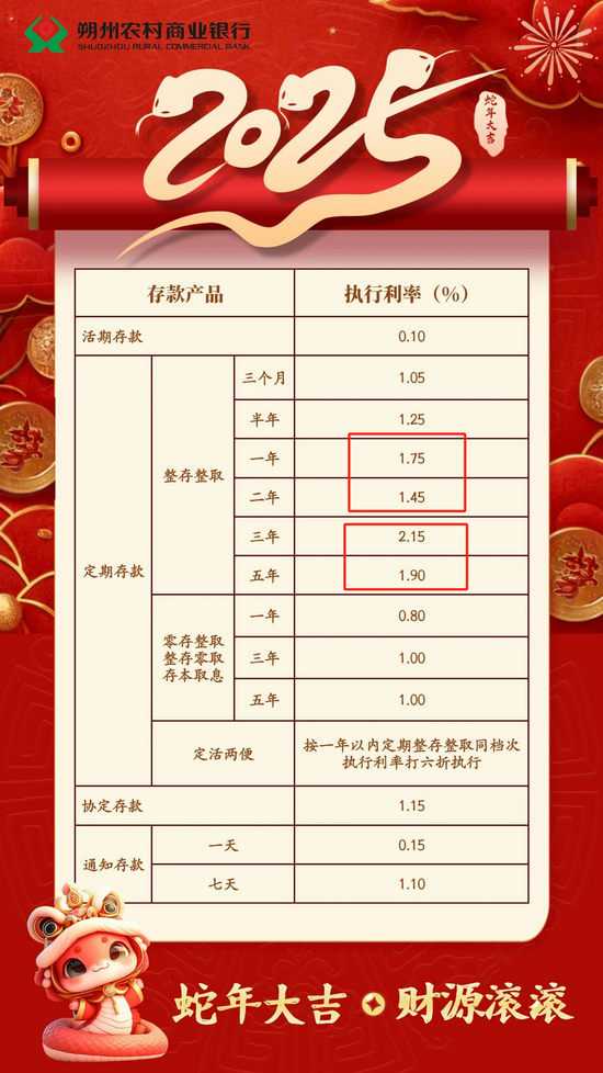 昨日晚间,朔州农商银行在官方微信公众号发布了“关于调整人民币存款执行利率的通知”。在公告中,该行表示,自2025年1月22日起,对一年期、三年期存款利率进行调整。为方便客户根据自身需求,更便捷地选择适合的存款产品,现将调整后的存款利率进行公示。