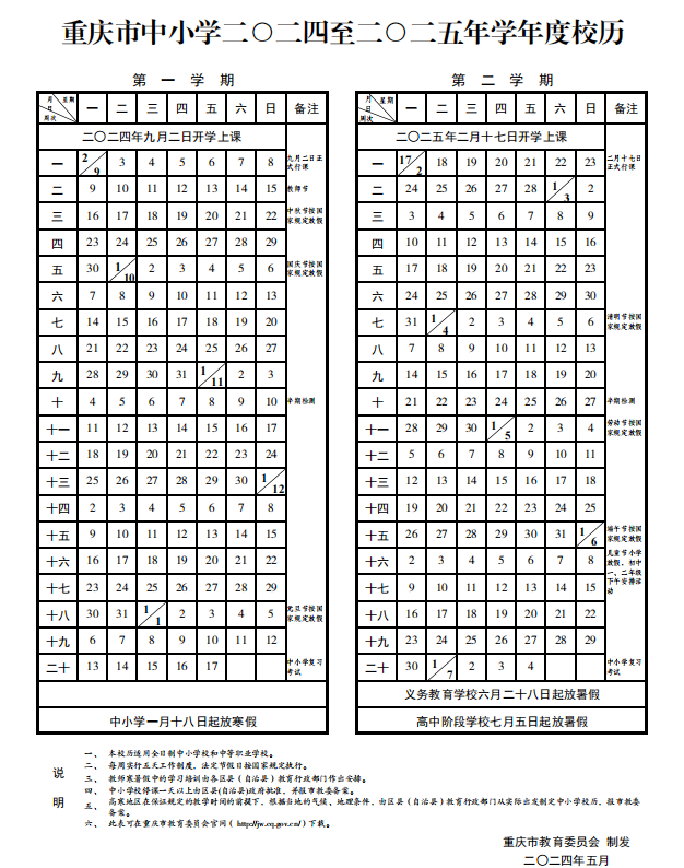 根据重庆市中小学2024-2025年学年度校历,2025年2月17日(星期一 农历正月二十)开学行课。