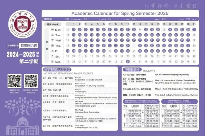 2月14日本科生、研究生报到注册,春季入学博士新生报到2月17日春学期开始上课。