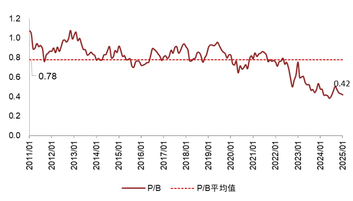 注:1)数据截至2025年1月31日,数据频率为月度;2)取各REITs最新披露的账面价值测算P/B