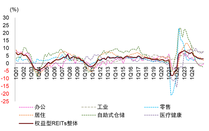 注:NAREIT最新数据截至2024年三季度, 数据频率为季度