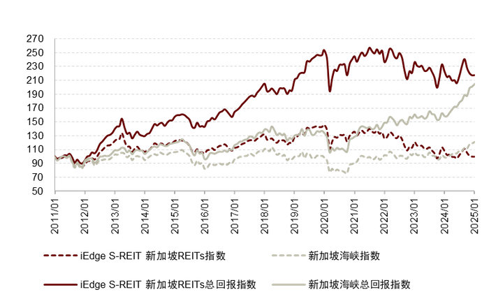 注:1)为了方便对比,我们对中证REITs价格指数及中证REITs全收益指数进行起始日期标准化调整;2)数据截至2025年1月27日;3)C-REITs市场情绪指标根据我们2023年3月24日发布的《公募REITs市场情绪初探》中描述的模型计算,并剔除了所有项目上市首日的换手数据