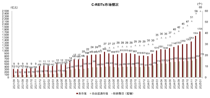图表7:截至1月27日,C-REITs总市值为1726亿元