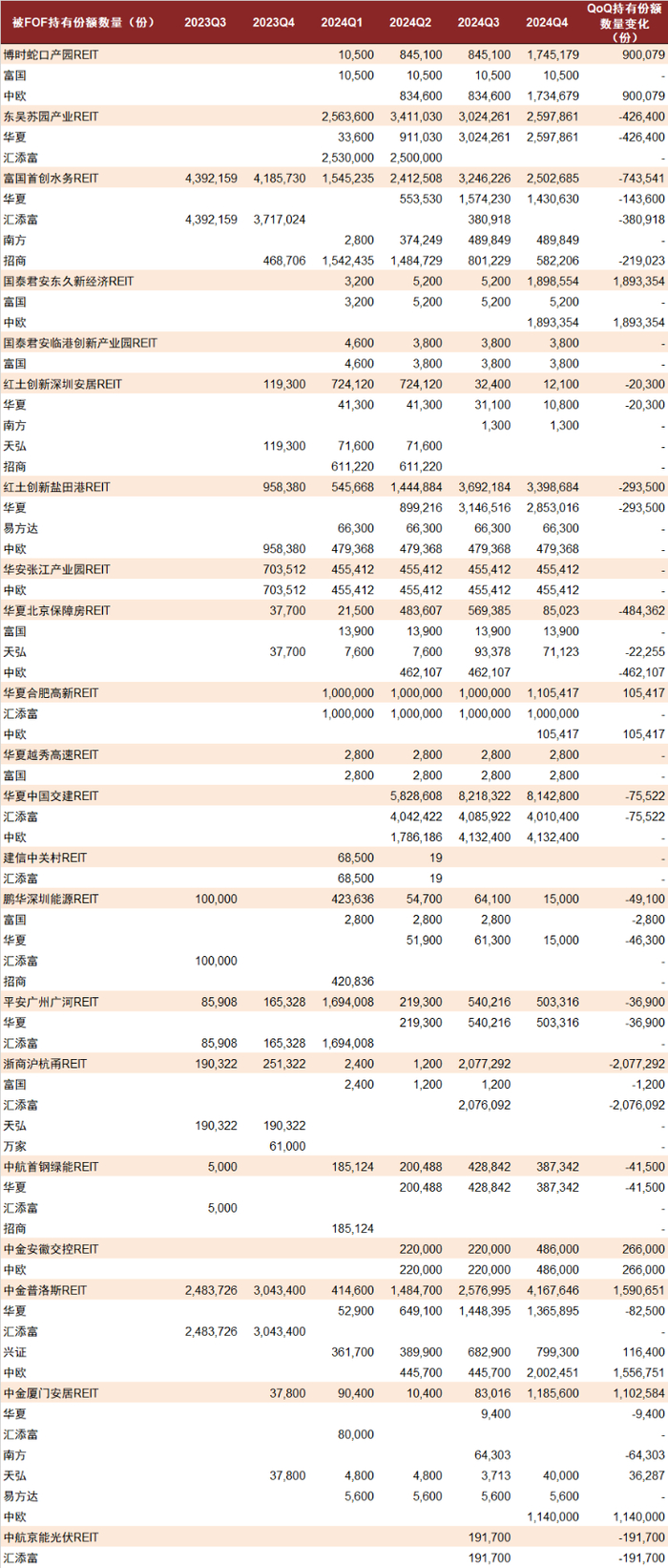 图表5:各基金公司公募FOF产品REITs持仓份额数量变化