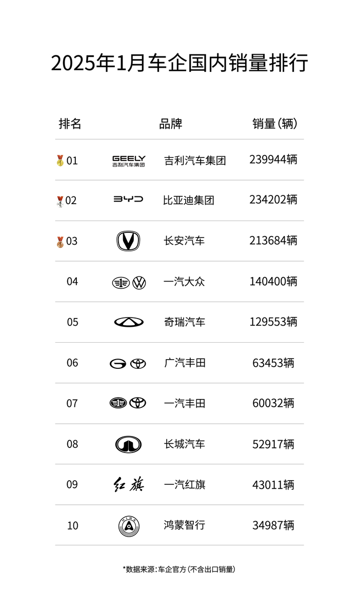 第三大突破是吉利在2024年较高基数的基础上实现淡季的“逆袭”。受春节假期和以旧换新政策影响,不少购车需求会在2024年12月提前释放,2025年1月为购车淡季,不少车企都出现销量同比下滑,而吉利汽车则实现了同比、环比双增长,显示出其竞争力正在不断向上。
