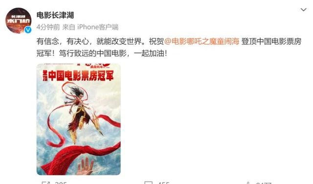 “哪吒”16字回应登顶!贾玲、吴京发声
