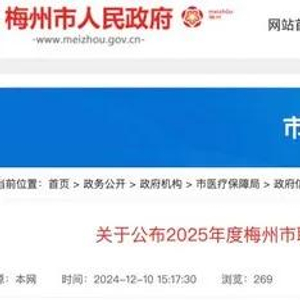 梅州市医疗保障局、国家税务总局梅州市税务局近期联合发布《关于公布2025年度梅州市职工医疗保险参保缴费基数和费率的通知》。该通知自2025年1月1日起执行。