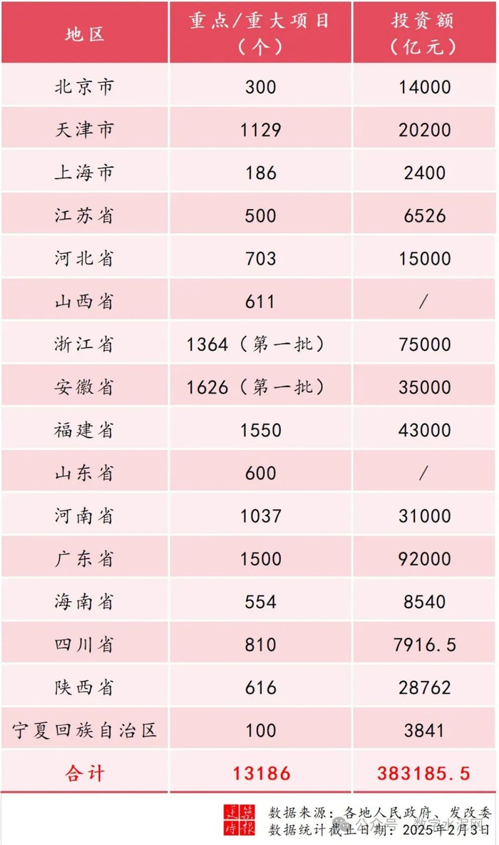 总投资超38万亿!全国16省2025年重点工程项目超1.3万个