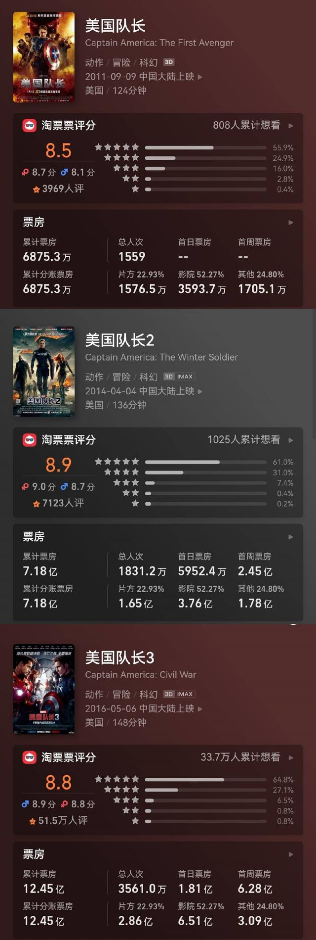 前几部《美国队长》的票房成绩都挺不错