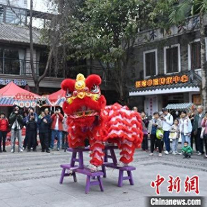 图为醒狮表演吸引民众观看。 陈楚红 摄