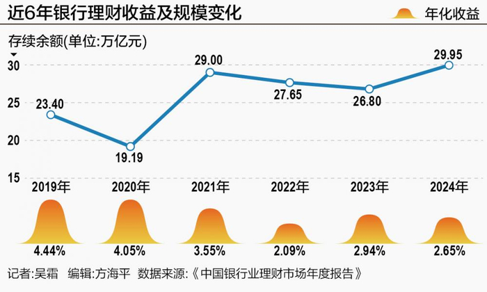 还有部分投资者“转身离开”银行理财的原因是他们对银行理财的投资获得感不高。这一感觉并没有错,中国理财网发布的《中国银行业理财市场年度报告(2024年)》显示,2024年,理财产品平均收益率为2.65%,较2023年的2.94%进一步下滑。相比之下,2024年纯债债基的平均收益率为4.58%,相较于2023年的3.68%回升明显。
