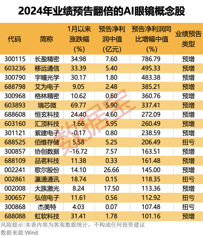 受益于消费电子景气度回升,部分AI眼镜概念股2024年业绩向好。