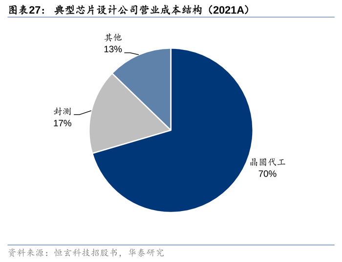 我们认为未来12英寸成熟制程代工价格或进入下行通道,利好国内设计及OEM企业出海。我们预计中国大陆主要12英寸成熟制程的产能将从2023年的81.7万片/月增长至2027年的211.1万片/月,对应CAGR为26.8%。对应中国大陆在全球的产能份额将从2023年的29%提升至2027年的47%。我们预计在中国大陆企业12英寸成熟制程产能的积极扩张下,全球代工价格或进入下行通道。我们预计2024-2027年40-90nm节点晶圆代工价格将呈现5-8%左右的年降。而28nm节点由于需求增长较快,且供给端竞争者较少,所以价格降幅相对较小,预计约3%。晶圆代工为芯片设计企业主要成本,占据约70-80%左右的比重。
