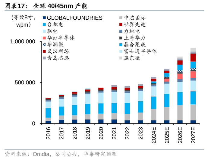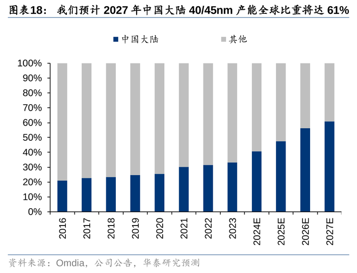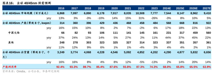 40/45nm:需求快速增长但中国大陆加速扩张产能,预计未来全球UTR约不足7成