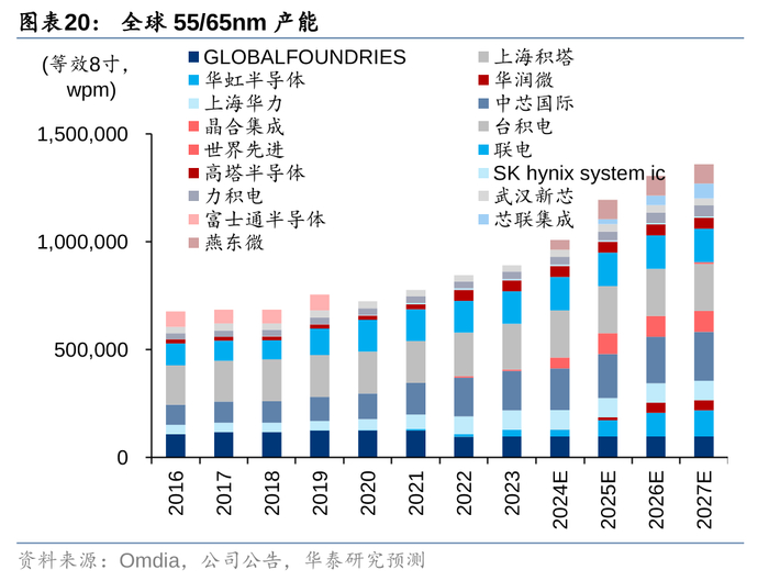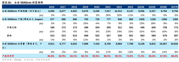 55/65/90nm:需求增长相对缓慢,预计未来几年将较为过剩