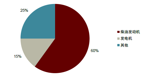 柴油发电机组中柴油发动机为核心部件。柴发机组主要包括柴油发动机系统、发电机系统、控制系统。运行时柴油发动机通过柴油的燃烧将热能转化为动能,然后通过交流发电机将动能转化为电能。从成本构成看,柴油发动机占比约60%,发电机占比约15%。