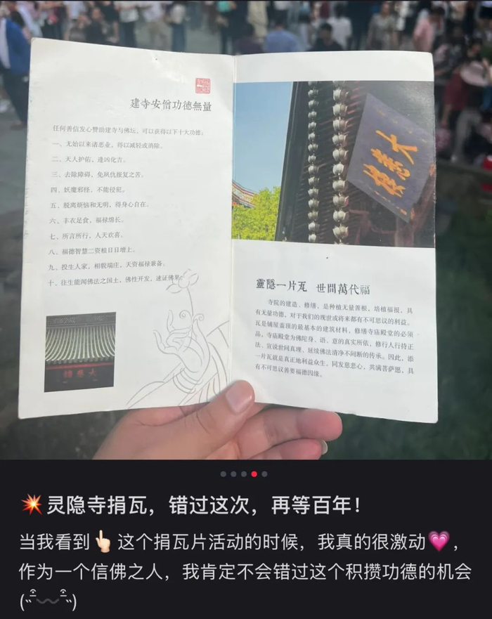 灵隐寺认捐“签名瓦片“,还有已经在各大寺院普及的“扫码送祝福”的电子功德箱,也让一向佛系的香客们为了争当“榜一大哥”燃起了强烈的竞争欲望。