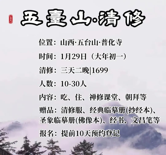今年五台山普化寺的清修活动,就是从大年初一开始为期3天2晚。
