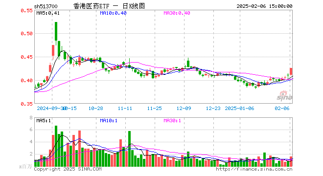 2月6日香港医药ETF(513700)份额增加100.00万份,最新份额20.70亿份,最新规模8.78亿元