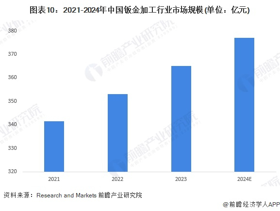 钣金加工行业是与我们生活密切相关的行业,几乎所有的制造行业中都会涉及到钣金加工,比如:电力行业,机床机器行业,食品机械,纺织,电器,仪表,设备,电力,网络,环卫,橱卫,办公等。根据Research and Markets数据,2021年中国钣金加工行业市场规模为50.76亿美元,约合人民币341.44亿元, 2023年市场规模在365.05亿元左右。初步估计2024年市场规模约377亿元。