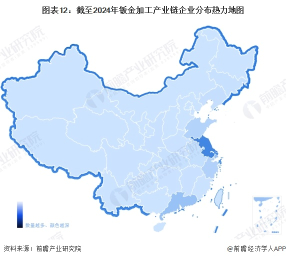 从我国钣金加工产业链企业区域分布来看,江苏等地区是我国钣金加工行业分布较为集中的地区,广东、浙江、山东等地同样分布着一定数量的钣金加工企业。