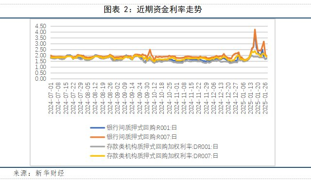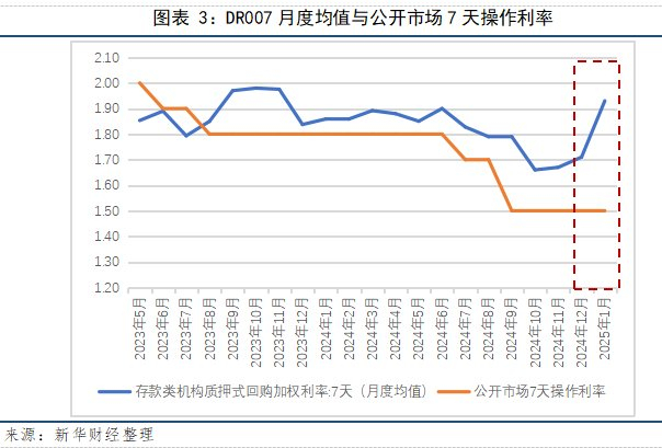 新华财经北京2月7日电(分析师刁倩)2025年1月份资金面维持紧平衡,央行在公开市场保持逆回购操作规模以对冲资金需求,呵护流动性平稳跨节。资金利率方面,受税期、居民取现需求及地方债发行等多重因素影响,反映银行间市场资金价格的DR001和DR007加权平均报价持续维持高位。展望2月,资金面因季节性因素带来边际转松的可能,但考虑到监管层以稳为主的态度,大概率仍将维持紧平衡,资金价格转低幅度有限。