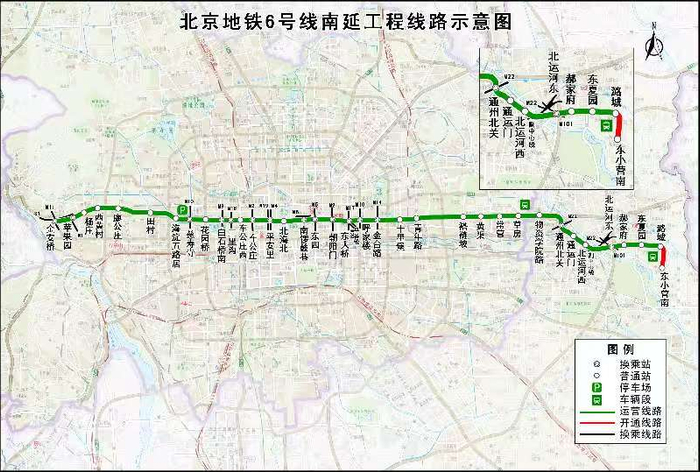 6号线南延是中心城东西向骨干线6号线的延长线,长约2.1公里,北起既有潞城站,沿运河东大街向东至东小营南站。建成后,将进一步完善城市副中心区域的交通配套功能,对于疏解非首都功能、提升绿色出行品质具有重要意义。