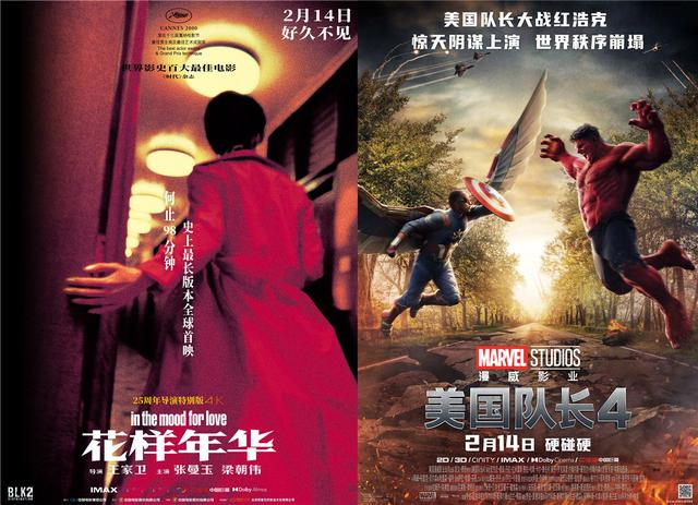 2月14日,《花样年华》和《美国队长4》将同日上映。