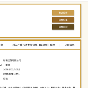 2月7日金融一线消息,据国家企业信用信息公示系统显示,2月5日,钱塘征信有限公司(以下称“钱塘征信”)完成工商登记,作为继百行征信和朴道征信后的第三家持牌个人征信机构,钱塘征信正式成立。这将进一步优化征信市场布局,增加个人征信有效供给。