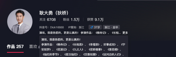 在该部短剧中,与刘晓庆搭档的男演员为耿大勇,公开资料显示,其曾出演《终极证据》《君九龄》《风起洛阳》《斛珠夫人》《奋进的旋律》《昔有琉璃瓦》等影视作品。据耿大勇社交账号显示,他今年37岁。