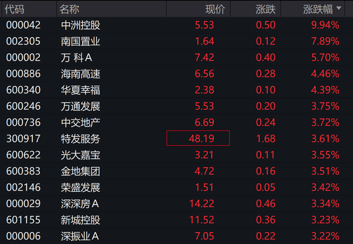 万科A涨超5%,南国置业、特发服务等跟涨。