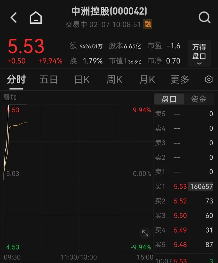 2月7日,低迷多时的地产股一跃而起,中洲控股直线拉涨停。