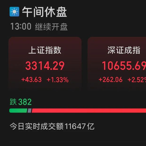 截至午间收盘,沪指涨1.33%,深成指涨2.52%,创业板指涨3.63%。