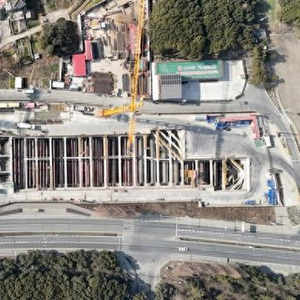车站为地下二层三岛五线车站,总长约1005米,是上海示范区线单体最长的地下车站,宽为13.8~55.3米,设5个出入口及5组风亭。车站主体基坑开挖最深处为25米,采用明挖顺作法,共设7个区施工。1区基坑标准段开挖深度为21.9米~24.04米,设置5道支撑;7区基坑标准段开挖深度为21.9~23.1米,设置5道支撑,局部端头井设置6道支撑。此外,目前3区基坑首道支撑已完成;5区基坑已施工至第4道支撑;2区、4区、6区计划下半年启动围护结构施工。