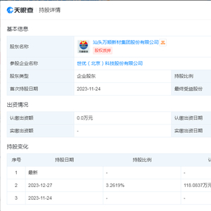 据悉,同花顺昨日(2月6日)将万顺新材归为“DeepSeek概念”。天眼查数据显示,2023年11月24日,万顺新材参股世优科技3.26%股权。