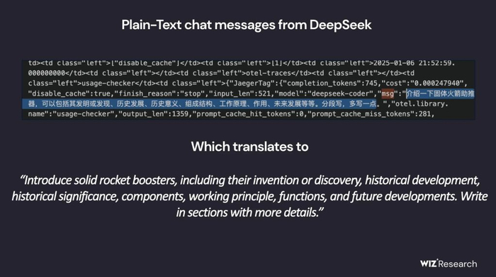 2025年1月,Wiz发现DeepSeek的ClickHouse数据库存在配置错误,导致数据库中的敏感数据可以被未授权访问,相关地址为oauth2callback.deepseek.com:9000和dev.deepseek.com:9000,Wiz的测试表明该数据库包含超过一百万行的日志流,涉及聊天记录、API密钥、后端细节及其他高度敏感信息。由于该数据库被配置为互联网可访问、内容未加密且无需身份验证,因此攻击者可完全地控制该数据库,甚至可能在DeepSeek环境中实施权限提升。