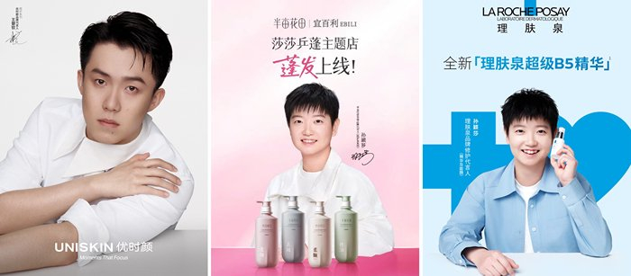 2025年开年一个月里,优时颜、半亩花田、理肤泉陆续官宣了全品牌代言人、全球品牌代言人(洗护发系列)和品牌修护代言人(精华及面霜)。值得关注的是,巴黎奥运会乒乓球混双金牌得主孙颖莎占了两席。