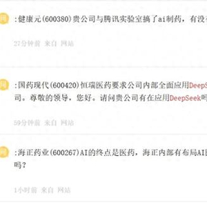 近期,中国企业深度求索(DeepSeek)开发的大模型DeepSeek-R1引发AI业内震动,亚马逊AWS、微软Azure等都宣布接入DeepSeek-R1模型。在DeepSeek大火的背景下,也有医药健康企业也被投资者追问应用情况,但目前并未有公司像恒瑞医药有明确的消息。例如,信邦制药在2月5日回答投资者提问时称,公司将持续关注新技术在医疗领域的发展,并积极探索新技术在公司业务上的运用。