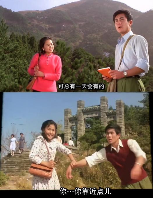 同年上映的《庐山恋》以中美建交后为背景,几毛钱的票价在当时创造了上亿的票房纪录。女主角周筠作为美籍华人,其穿着打扮、言行思想都受到明显的西方影响,她和中国青年耿桦的文化碰撞展既暗示了中美之间的文化纽带,也展现了中美在文化上的相互理解和包容。俩人在庐山相遇相恋最终克服障碍走到一起的叙事角度,象征着中美关系从对立到缓和、合作的转变。