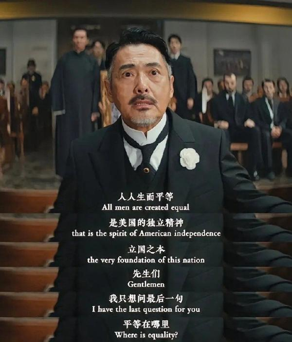 《唐探1900》中白轩龄(周润发 饰)在法庭舌战群雄的戏份,导演陈思诚直言灵感来自TikTok首席执行官周受资在美国听证会不停被打断发言的不公遭遇。再联系近日“TikTok难民”涌向小红书的荒诞现实,中国人不断调整着对美国的剖析和审视,也不断更新着对自身的认识与定位。而“美国”和“美国人”在新中国电影的历史长河中也伴随着两国关系的变化,以及中国大众对于“美国”心态的变化经历了巨大的变迁和调整。