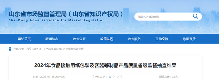 2024年食品接触用纸包装及容器等制品产品质量省级监督抽查结果