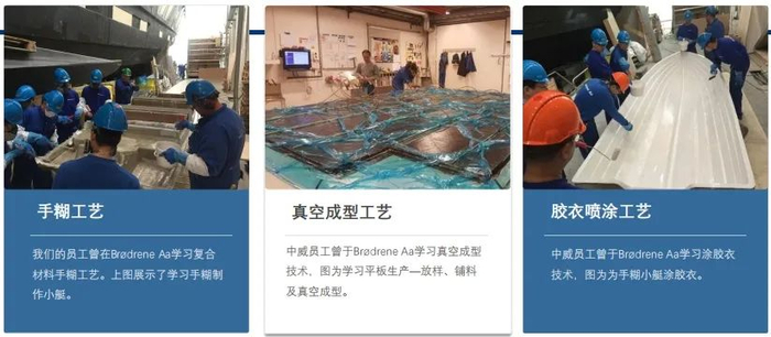 为响应航运“碳达峰”“碳中和”等低碳环保的要求,广东省属国有企业广东省港航集团(GDPS)投资了世界碳纤维商用船舶建造商的先驱,挪威Brødrene Aa AS公司。2016年,省港航集团旗下香港上市公司珠江船务(CKS)出资引进 Brødrene Aa AS的碳纤维建造技术,并在广州建立了广东中威 复合材料有限公司作为亚洲碳纤维造船基地。作为两家独立的公司,中威公司和Brødrene Aa AS共享碳纤维船舶的技术资源,共同开发碳纤维船的市场。中威公司由省港航集团的完全持有,在中国和东南亚享有更多的资源。中威公司现有厂房占地面积17,000平方米,设计最大年产能为8艘40米碳纤维船舶。公司目前拥有独立的产品研发设计部门和先进的碳纤维结构生产车间,还有一批掌握碳纤维船舶制造工艺的专业人才,可为客户提供碳纤维船舶从设计到建造、交付的综合解决方案,同时可为国内外海工企业承 接水翼高速船、游艇、海洋工程等海工项目,提供碳纤维结构件的设计和生产,亦可提供玻璃钢游艇、无人艇的代工服务,以及为复合材料船舶提供船、机、电的维修、保养服务。中威公司始终坚持创兴发展,公司累计获得专利17项,其中发明专利2项,实用新型专利14项,外观设计专利权1项,并均应用于实际项目生产。