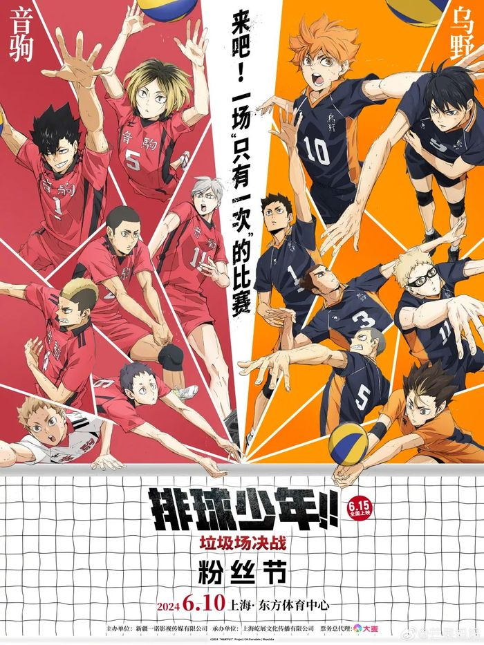 以2024年6月举办的电影《排球少年!!垃圾场决战》ONLY为例,这快闪就是电影官方推出的ONLY展会,作为动画播出十年、大电影正式上映的衍生,该活动在上海东方体育中心开展,一度引发粉丝的热情探讨,微博话题#上海要办万人排球少年ONLY# 热度攀升,预售票更是开售即罄,进一步证明了单一IP消费者的可观购买力。