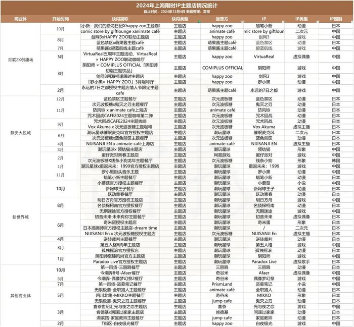从运营方来看,目前的入局者主要包括中国品牌潮玩星球、次元波板糖、奇谷米、三月兽、happy zoo、PrismLand、萌果酱主题café、COMIPLUS OFFICIAL,以及来自日本的animate café和shonen jump cafe等等。具体可参考:《一年快闪活动数千场,有人盆满钵满,有人赚个吆喝?|雷报》。
