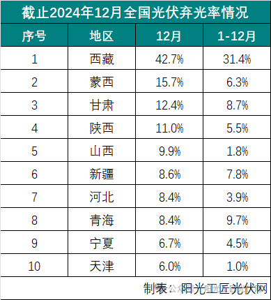 西藏弃光34.4%、青海弃光9.7%、甘肃弃光8.7%丨2024年全年各地弃光率出炉!