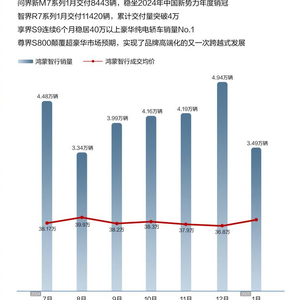 同时,鸿蒙智行方面还表示“国民SUV问界新M7系列1月交付8443辆,作为2024年的中国新势力年度销冠,问界新M7持续保持30万级中国新势力车型TOP级销量,彰显了在豪华新能源SUV市场的强大竞争力。”